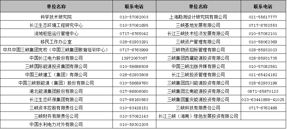 各招聘单位咨询电话: